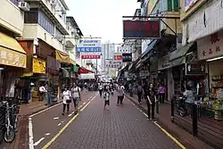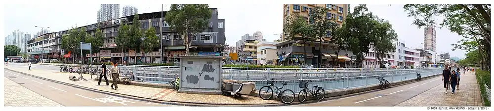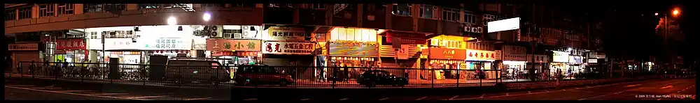 Shek Wu Hui (石湖墟) used to be the marketplace of the Sheung Shui area, before the development of Sheung Shui Town. Bounded by Lung Sum Avenue (龍琛路), San Fung Avenue and Jockey Club Road, it was the main market in the Sheung Shui area from the 1930s onwards.[1] Today some private residences can be found towering over the old flats in the hui (market). The majority of the buildings still standing were repaired in the 1950s.