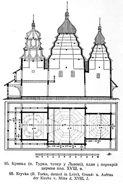 - ^ Драган М. Українські деревляні церкви: Генеза і розвій форм // Збірки Національного музею у Львові. — Львів, 1937. — Ч. 2. — XVI + 136 с.