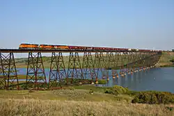 In Valley City it is crossed by several more bridges, including the Hi-Line Railroad Bridge and, before demolition, the Rainbow Arch Bridge.