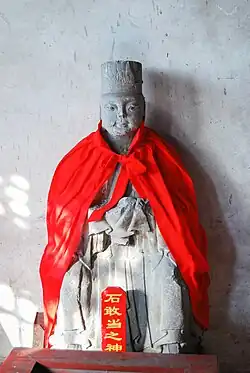 Shi Gandang (Chinese: 石敢当; pinyin: Shí Gǎndāng) is a Chinese god and the protector of the home. He was originally a spirit sent down from Mount Tai by Bixia Yuanjun to protect ordinary people from evil spirits.[1][2]