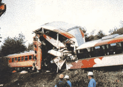The Shigaraki train disaster (信楽高原鐵道衝突事故, Shigaraki Kōgen Tetsudō shōtotsu jiko) was a railway accident that occurred in Shigaraki (now Koka), Shiga Prefecture, Japan on May 14, 1991. A Shigaraki Kōgen Railway (SKR) train and a West Japan Railway Company (JR West) train collided head-on, killing 42 people and injuring 614 others. Until the Amagasaki derailment in 2005, this was the deadliest railway disaster in Japan since the Yokohama rail crash of 1963, which killed 161 people.