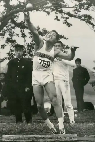 Shigenobu Murofushi (室伏 重信, Murofushi Shigenobu; born October 2, 1945) is a retired Japanese hammer thrower. He competed at the 1972, 1976 and 1984 Olympics and finished in 8th, 11th and 14th place, respectively.[2] He was the flag bearer for Japan at the 1984 Olympics.