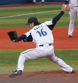 Shigeru Kaga (加賀 繁, Kaga Shigeru; born April 13, 1985 in Niiza, Saitama, Japan) is a professional Japanese baseball player. He plays pitcher for the Yokohama DeNA BayStars.