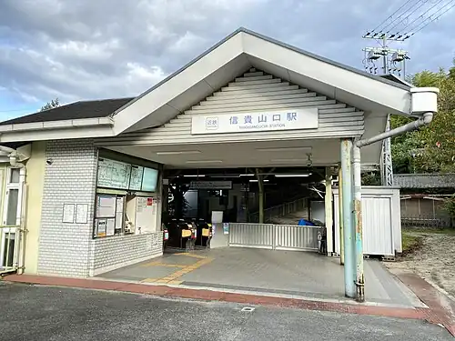 Shigisanguchi Station (信貴山口駅, Shigisanguchi-eki) is an interchange passenger railway station in located in the city of Yao, Osaka Prefecture, Japan, operated by the private railway operator Kintetsu Railway.