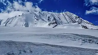 Shilla is a mountain peak close to Spiti Valley, part of the Himalaya mountains. Its peak is 6,132 metres (20,118 ft) above sea level.[1][a] It is in Himachal Pradesh in Northern India. The name may be derived from: Shi = death, Shi-la = range or peak death. Other meanings locally offered are 'a place of monastery' or 'a gateway to heaven'. The Shilla peak is on the divide between Lingti and Shilla Nullah/nala.
