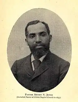Henry N. Jeter served as pastor of the Shiloh Baptist Church for 25 years, starting in 1875.[4] Jeter established a written constitution and expanded the choir.[4] He was known for "diligently uniting the people despite obstacles."[4]