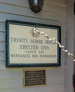In February 1799, the wardens and vestry of Trinity Church voted to build a school house.[2] The funds were provided by a bequest by Nathaniel Kay.[2] The resulting rectangular Georgian structure was 40 feet long and 25 feet wide.[2] It was said that "many of the leading citizens of Newport attended school in this house."[3] The school continued operation until 1867 when the building was purchased by the Shiloh Baptist congregation.[2]