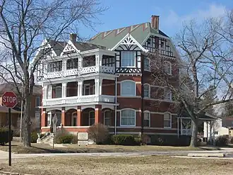 Shiloh House is a historic house at 1300 Shiloh Boulevard in Zion, Illinois. John Alexander Dowie, the founder of Zion, built the house in 1902–03; he lived there until his death in 1907. Architect Paul Burkhardt of Chicago, who worked on many of Zion's early buildings, designed the home. Burkhardt's design incorporated the Queen Anne and Swiss chalet styles. After Dowie's death, the house passed through several owners, including the Great Lakes Bible Institute; the school used the house for twelve years before moving to Missouri in 1945. The Zion Historical Society bought the house and renovated it for a new headquarters in 1967.[2]
