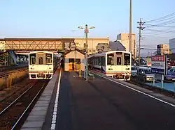 Shimodate Station (下館駅, Shimodate-eki) is a junction passenger railway station located in the city of Chikusei, Ibaraki Prefecture in Japan, operated by East Japan Railway Company (JR East), together with the private railway operator Kantō Railway and the third sector Mooka Railway. It is also a freight depot for the Japan Freight Railway Company (JR Freight).