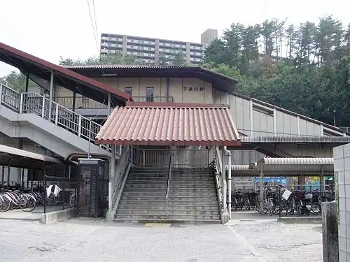 Shimofukawa Station (下深川駅, Shimo-Fukawa-eki) is a JR West Geibi Line station located in 5-chōme, Fukawa, Asakita-ku, Hiroshima, Hiroshima Prefecture, Japan. This is the largest of the three Fukawa stations on the Geibi Line, and handles many trains daily.