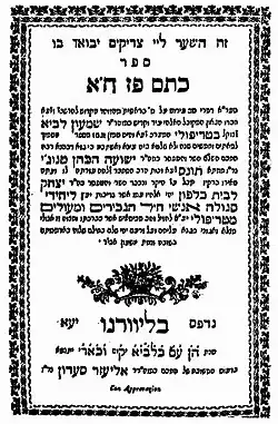 ![]() Title page of Ketem Paz, Part I, by Hakham Shimon Lavi | |