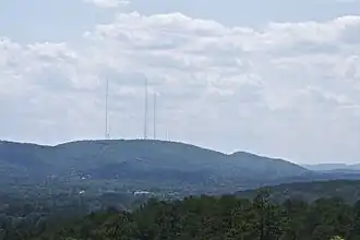The first television antenna on Shinall Mountain was erected in 1955 to house the transmitters of KARK-TV (channel 4) and KTHV (channel 11). The first FM station to transmit from Shinall Mountain was KARK-FM (103.7 FM, now KABZ), which began broadcasting there in 1967. The tallest of the towers standing on the peak is the guyed mast built in 1983 for Fox affiliate KLRT-TV (channel 16), now owned by Mission Broadcasting, which stands at 1,194 feet (364 m).[4][5]