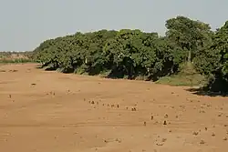 The Shingwedzi River drains the plain southeast of the Soutpansberg.[4] Its sources are about 40 km to the ESE of Thohoyandou and about 20 km west of the town of Malamulele, in the Mulamula area. It flows eastwards across the lowveld and enters the area of the Kruger National Park.[5]