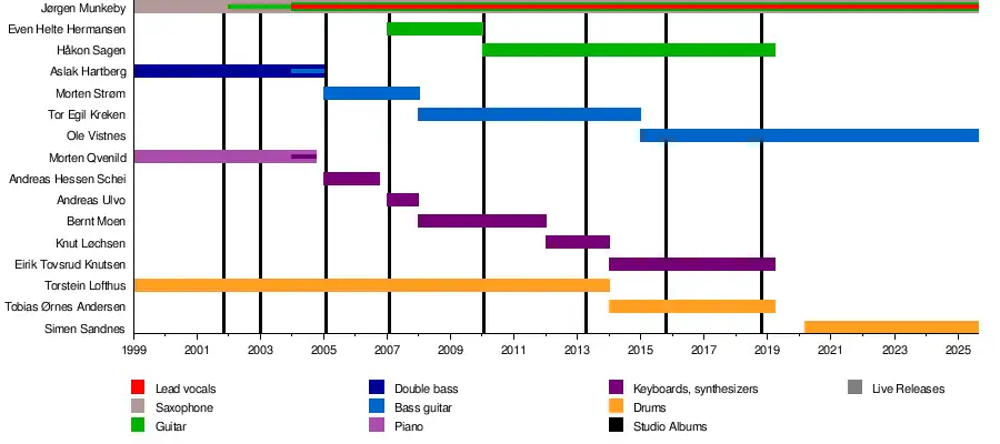 - Jørgen Munkeby – saxophone (1999–present), flute, clarinet (1999–2007), guitar (2002–present), vocals (2004–present)
