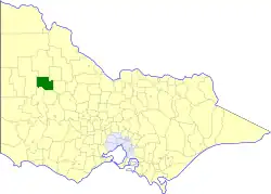 The Shire of Warracknabeal was a local government area about 200 kilometres (124 mi) west-northwest of Bendigo and 60 kilometres (37 mi) north of Horsham, in western Victoria, Australia. The shire covered an area of 1,839 square kilometres (710.0 sq mi), and existed from 1891 until 1995.