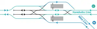 | 2 | N Namboku Line | for Akabane-Iwabuchi SR Saitama Rapid Railway Line for Urawa-Misono |
