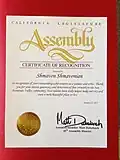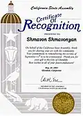 - 2015, painting "Bridge" received Certificate of Special Congressional Recognition from Brad Sherman - Member of Congress : Received Certificate of Recognition from Matt Dababneh -45th Assembly District : Received Certificate of Appreciation from Bob Blumenfield - Councilmember 3rd District : Received Commendation from Sheila Kuehl - Supervisor, Third District