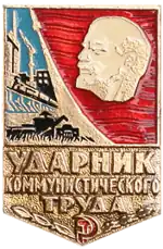 The Shock worker of Communist Labour (Russian: Ударник коммунистического труда, romanized: Udarnik kommunisticheskogo truda) was an official title of honour awarded in the Soviet Union to those who displayed exemplary performance in labour discipline (udarniks). It was awarded with a badge and certificate, as well as a cash prize.