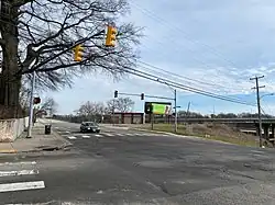 The burying ground has suffered several desecrations. Throughout its years of active operation, it was a main target for body snatching by and for the medical colleges, especially the Medical College of Virginia and the University of Virginia.[22][23][24] It suffered from the explosion of a gunpowder magazine on April 3, 1865, and the later construction of two new powder magazines in 1867. As a cemetery, it was abandoned by the city and visually erased from the landscape. All of its grave markers were removed. It was rendered unrecognizable, removed from maps, and almost completely forgotten. Its grounds were divided up, most were sold and others gifted to new owners. In addition, it has had roads, a railway, and the highway run through it grounds. An old Sunoco gas station sits upon a portion of its original 2 acres, along with a billboard; while other parts lie beneath Interstate 64, 4th St., 5th St., 7th St. Hospital St. and also the railroad tracks. Three approaching threats to the burial ground are DC2RVA passenger rail (high-speed rail), the east-west Commonwealth Corridor, and the proposed widening of I-64.[25][26][27] The most recently known appears to be the installation of underground cables which were run through the burial ground in the area of Hospital St. and 7th St. in early 2022. Plans proposed in 2024 for additional infrastructure work at the intersection of N 7th St., and Hospital St. by the city, if carried out as planned will also harm the burial ground.