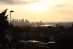In the Second World War it was the site of an array of anti-aircraft guns which protected London. As part of 'London Stop Line Central' it was a last line of defence from a German land invasion, that was assumed would follow Watling Street from Dover. A number of devices were under the control of the Home Guard including a fougasse and a flame thrower.[4] Adjacent to an anti-aircraft battery was built a prisoner-of-war camp on what is today part of a golf course on the north-eastern slopes.[5][6] North of the golf course is Shrewsbury Park, the site for a barrage balloon, part of the Air Ministry's Field Scheme Nosecap for the defence of London; during the Battle of Britain it was manned by 901 County of London Barrage Balloon Squadron.[7]