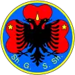 The membership badge of Shoqata e Guidave dhe Scoutëve në Shqipëri incorporates the double-headed eagle of the arms of Gjergj Kastriot Skanderbeg featured on the emblem of Albania.