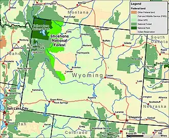 - ^ a b "Welcome to Shoshone National Forest". U.S. Department of Agriculture. Archived from the original on October 25, 2012. Retrieved August 31, 2013.