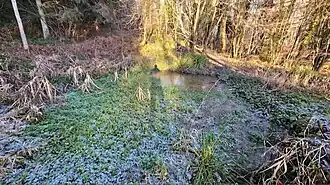 The other can be accessed up a set of small stone stairs from the road on crossing the bridge across the Derwent to the right (east). This path leads along the north bank of the River Derwent, through first a large field on the opposite side of the river to the Shotley Bridge Cricket Club, then a small wooded nature reserve including the artificially created Price Pond (Google Maps) / wetland and stream, a farm at the top of the following hill, and eventually to the Northumberland hamlet of Newlands. This path has the nickname Waterfall Way due to there being one small waterfall on Mere Burn and two on Small Burn close to the Newlands end of the path. The two near Newlands are also referred to as Sisterson Falls with reference to a nearby farm.