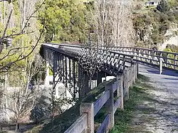 The old lower Shotover bridge was built in 1915 and replaced the previous bridge. It, in turn was replaced in 1975 by a new bridge and was used after then as a support for a pipeline. In 2004, the bridge was restored and now forms part of the Queenstown trail.[6] The bridge is 172.5 metres long and built with tall concrete piers.[7]