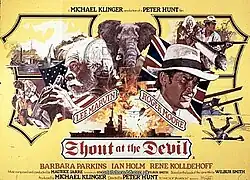 Shout at the Devil is a 1976 British war adventure film directed by Peter R. Hunt and starring Lee Marvin and Roger Moore. The film, set in Zanzibar and German East Africa in 1913–1914, is based on a novel by Wilbur Smith which is very loosely inspired by the sinking of the SMS Königsberg.[4] The supporting cast features Barbara Parkins and Ian Holm.