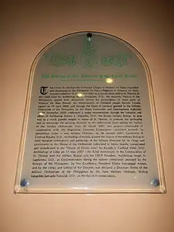 The shrine was spared destruction during privatization of some parts of Villamor Air Base under President Joseph Estrada, in a memorandum signed on April 10, 2000,[3] and by the deed of usufruct granted to the Military Ordinariate of the Philippines by the Bases Conversion and Development Authority on November 9, 2000, during the chairmanship of Rogelio L. Singson.[4] After the visit of the pilgrim relics of Thérèse in 2000, the shrine again underwent a major reconstruction initiated by the reigning Ordinary, Archbishop Ramon C. Arguelles, to promote the saint's spirituality and to encourage devotion to the "Millennium Saint" amongst servicemen. From March 8, 2005, this project continued towards its completion under a new ordinary, Leopoldo S. Tumulak.