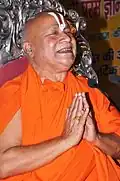 Śrīrāghavakṛpābhāṣyam (Sanskrit: श्रीराघवकृपाभाष्यम्) is a series of Sanskrit commentaries on the Prasthanatrayi (the Brahma Sutra, the Bhagavad Gita, and eleven Upanishads), authored by Rambhadracharya. These commentaries were released on 10 April 1998 by the then Prime Minister of India, Atal Bihari Vajpayee.[1][2] Rambhadracharya composed a commentary on Narada Bhakti Sutra in 1991, and thus revived the tradition of Sanskrit commentaries on the Prasthanatrayi after five hundred years.[3][4] This was also the second commentary of the Ramananda Sampradaya on Prasthanatrayi, the first being the Ānandabhāṣyam, composed by Ramananda himself.[3] These commentaries were published by Shri Tulsi Peeth Seva Nyas.[1][5] The author won the Rajshekhar Samman from the Madhya Pradesh Sanskrit Academy, Bhopal, for the commentaries.[6][7]