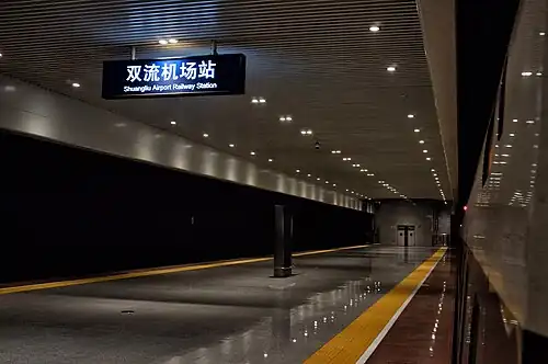 The Shuangliu Airport railway station or Shuangliujichang railway station (Chinese: 双流机场站) is located in Shuangliu County on the Chengdu–Guiyang High-Speed Railway, which serves as an airport rail link system for the Chengdu Shuangliu International Airport.