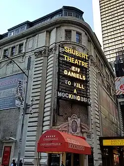 Tim Minchin's West End hit Matilda the Musical opened at the Shubert in April 2013[330][331] and ran for 1,554 performances through the beginning of 2017.[332] Subsequently, the Shubert staged a revival of Hello Dolly! with Bette Midler from April 2017 to August 2018.[333][334] Hello, Dolly! broke the box office record for the Shubert Theatre twelve times,[335] grossing $2.4 million during the week of October 23, 2017.[336] Aaron Sorkin's play To Kill a Mockingbird opened in December 2018[337] and ran until all Broadway theaters temporarily closed on March 12, 2020, due to the COVID-19 pandemic.[338] The Shubert reopened on October 5, 2021, with To Kill A Mockingbird,[339][340] which closed in January 2022.[341][342] The Shubert's next booking, a limited run of the farce POTUS, opened in April 2022.[343][344] It was followed by the musical Some Like It Hot in December 2022,[345][346] which closed in December 2023.[347] The musical Hell's Kitchen opened at the theater in April 2024,[348] transferring from off-Broadway.[349]