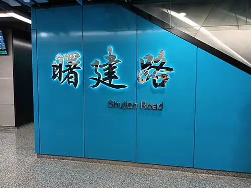 Shujian Road (Chinese: 曙建路; pinyin: Shǔjiàn Lù) is a metro station on the Line 15 of the Shanghai Metro. Located at the intersection of Shujian Road and South Lianhua Road in Minhang District, Shanghai, the station was scheduled to open with the rest of Line 15 in 2020.[1][2] However, the station eventually opened on 23 January 2021 following a one-month postponement.[3]