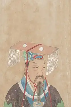 Emperor Shun (Chinese: 帝舜; pinyin: Dì Shùn) was a legendary leader of ancient China, regarded by some sources as one of the Three Sovereigns and Five Emperors[1] being the last of the Five Emperors. Tradition holds that he lived sometime between 2294 BC and 2184 BC. Tradition also holds that those with the surname Hu (胡) are descendants of Emperor Shun. The Duke Hu of Chen, 胡公滿, a descendant of Shun, became the founder of the State of Chen. Later Chen dynasty emperors such as Chen Baxian would also claim descent from Shun.[2][3]