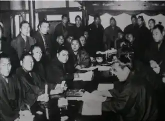 On January 6, 1932, the day after the banzuke was announced, several wrestlers of the Dewanoumi stable — 20 makuuchi, 11 jūryō and one makushita —[5] went out to be treated to Chinese cuisine restaurant Shunjuen in Shinagawa, Tokyo, at the demand of sekiwake Tenryū who invited them.[3] At the banquet, Tenryū's delivered a speech advocating for a "reform of sumo society". They vowed to unite and locked themselves in the Shunjuen restaurant to gather their demands to the Association and issued a number of proclamations.[3]