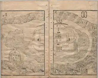The former location of Sizhou's walled prefectural seat near the Ming Zuling tombs. A diagram of the area before its complete flooding beneath Hongze Lake in 1680 from the section on flood prevention in the Qing-era Complete Library of the Four Treasuries.