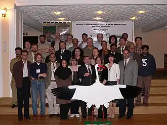 The final report “Safe Flyways for the Siberian Crane” was launched at the UNEP General Council Meeting on February 24, 2010.[6] Overall, the SCWP strengthened the network of wetlands along the Siberian crane's flyways through improving site protection and management, e.g. GIS training for project consultants and reserve staff in Kazakhstan, international recognition through site designations under CMS, Ramsar and World Heritage Conventions, securing water supplies to water-stressed wetlands, integrating stakeholders concern and decision making into reserve management and undertaking education and awareness programs at local, national and flyway levels, e.g. crane celebrations.