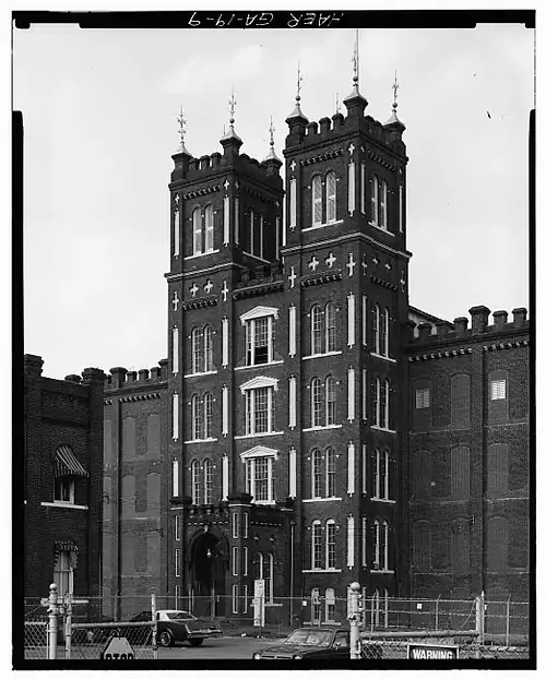 The Sibley Mill is a historic building located on the Augusta Canal at 1717 Goodrich Street near downtown Augusta, Georgia, United States. Designed by Jones S. Davis, it was built on a site previously occupied by the Confederate Powderworks, and was completed in 1882. While the interior is typical of any textile mill of the period, its imposing exterior is notable for an ornate style variously described as eclectic and neo-gothic. Textile products were produced there until 2006, since when the building has been unoccupied. The mill was built to operate on hydropower, and continues to generate electricity today.