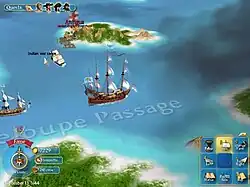 Pirates is separated into several mini-games requiring different skills, as well as a "sailing map" mode where the player navigates around the Caribbean, looking for things to do. Sailing technique, evasion (running from guards), naval gunnery, turn-based strategy, dancing with the daughter of a governor,[15] fencing, and strategic planning are all skills needed to succeed in Pirates. The player must choose one of five different skills at the start, which the game will give them an advantage in. During the game, players can acquire items and special crew members that make some mini-games less difficult.