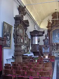 In Christianity, a side-altar or bye-altar is an altar that is subordinate to the central or high altar in a church. The term is generally applied to altars situated in bays of the nave, transepts, etc.[1] Side-altars may be recessed in a side-chapel, or simply built against a main aisle wall.