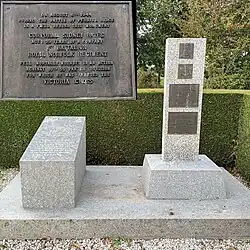 There is a memorial to Bates near Perrier Ridge at Pavée[9] about 1 km south of the hamlet of Sourdeval named in the citation (not to be confused with the market town of Sourdeval about 20 km (12 mi) away). At the same location a block reads "In memory of the men of the 3rd Bn Monmouthshire Regt, The 1st Bn Royal Norfolk Regt and all other units who died defending this ridge against overwhelming odds, 5th to 10th August 1944."