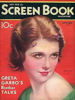 By the late 1920s, Fox had begun studying acting to establish a stage or film career. She temporarily joined a touring theatrical company around 1928, and within a year, she was performing on Broadway.[6] She had a role in It Never Rains in 1929, and the next year, she portrayed the character Rhoda Wampas in the comedy Lost Sheep.[7] In May 1930, the theatre critic for Variety gave Lost Sheep a lukewarm review but complimented Fox's energetic performance in the play, noting "That little cutie Sidney Fox, who first came out in It Never Rains, pleased again with her Rhoda."[8] Someone else in the audience was impressed with Fox, Carl Laemmle Jr., then head of production at Universal Studios.[9] Laemmle soon signed her to a multi-year contract with the Hollywood film company.[10]
