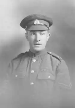 While serving as a corporal in the 11th (Service) Battalion, Suffolk Regiment, British Army during the First World War, he was seriously wounded during the Battle of the Somme in 1916 and invalided back to England, spending several months in hospital. Upon discharge, he returned to duty in Northern France.[1]