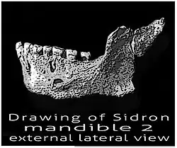 Morphologically, the El Sidrón humans show a large number of Neanderthal lineage-derived features even though certain traits place the sample at the limits of Neanderthal variation. Integrating the El Sidrón human mandibles into the larger Neanderthal sample reveals a north–south geographic patterning. The cave is in the northern portion, southern Neanderthals show broader faces with increased lower facial heights.[10]