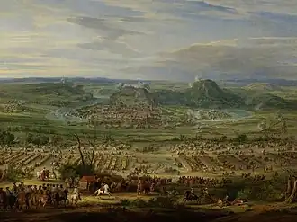 ![]() Overview of the siege of Besançon; on the right, smoke from the cannons installed on Chaudanne by Vauban. | |||||||