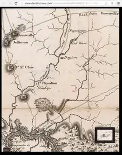 - ^ These included, for example, John Reily from Columbia. Spooner, pages 23-27. [6] Also known as the 1888 Fort Miami, this was the first Symmes settlement, it was on the Little Miami, being larger and stronger. [7]