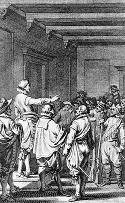 ![]() Romanticized historical painting of Kenau leading a group of 300 women in defense of Haarlem, by Barend Wijnveld and J.H. Egenberger, 1854 | |||||||