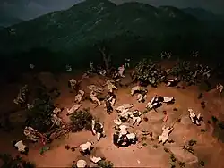 Jeon led an attack on Hong's camp, but was defeated by superior firepower. The Jangtae only hindered the rebels in Jeonju's mountainous location. Jeon himself had a shrapnel lodged in his shoulder and a gunshot wound to the leg.[1][8] General Kim Sun-myeong and Lieutenant Jeongsoo Lee Bok-yong, who were running ahead, lost their lives in the belief that attaching an amulet with the word Gung-eul would avoid bullets, but they were unable to break through the main camp. In this battle, about 500 peasant soldiers were killed and they were finally forced to retreat to Jeonju Castle.[2]