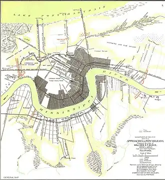 Map depicting Louisiana and approaches to New Orleans as depicted during the occupation of New Orleans[1]
